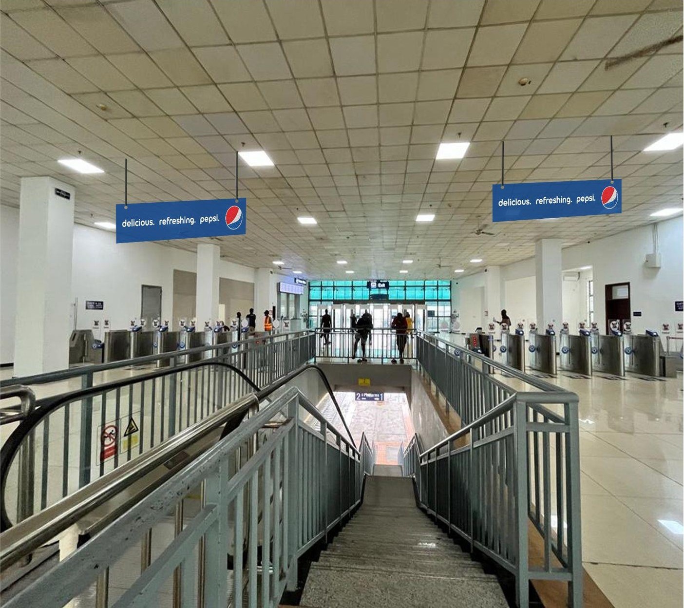 Description: Double Sided Billboard in Mile 2 Station, Platform 1 & 2 Gates by Staircase, drop-down Lagos