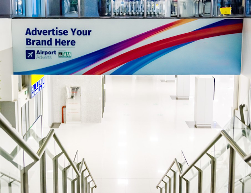 Description: Wallmount Billboard By Departure Hall Lintel to Arrival Hall Through Escalator NAIA, Abuja