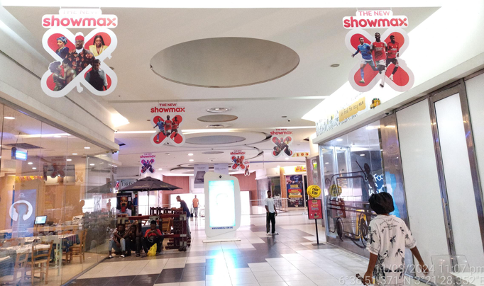 All traffic in the top gallery of Ikeja City Mall is visible to all traffic around the Cinema and on the escalators from the 1st floor to ground floor